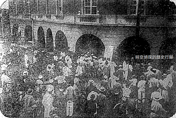 廣播實況轉播讓棒球得以深入民眾的日常生活。圖為在臺灣日日新報社前觀看中學野球大會戰報的熱情球迷。(圖片來源:《臺灣日日新報》)