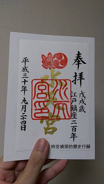 雖然水天宮剛推出紀念江戶鎮座二百年的特殊御朱印,卻跟筆者昨天提及的神田神社一樣是採取事先印好版型、現場撰寫日期的方式,算是美中不足的小小遺憾。