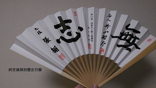 受限於時間壓力,筆者直接來到位於棋院二樓的販賣部。原本小編想選林海峰九段、王銘琬九段或是張栩九段題字的扇子,不過似乎要事先填單預訂(總不可能事先請棋士寫好十打扇子XD),便改買張栩九段與井山六冠現正進行的第 43 期圍棋名人戰紀念扇。