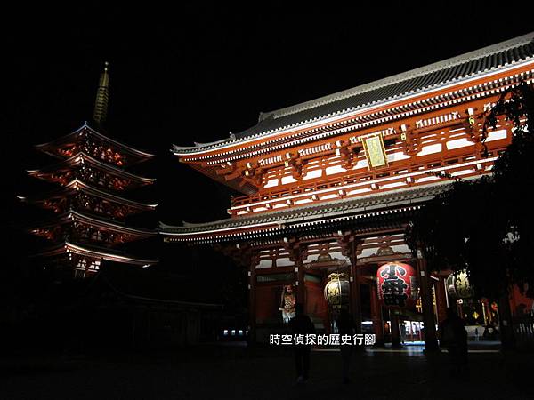 沿著這條街道一路向北,便會來到淺草最具代表性的景點淺草寺。自 2003 年開始,淺草寺為了慶祝江戶開府 400 週年,便邀請規劃過東京鐵塔、彩虹大橋等地標的照明設計師石井幹子在境內的本堂、五重塔、寶藏門和雷門等處點燈,從此成為淺草寺的夜間美景。