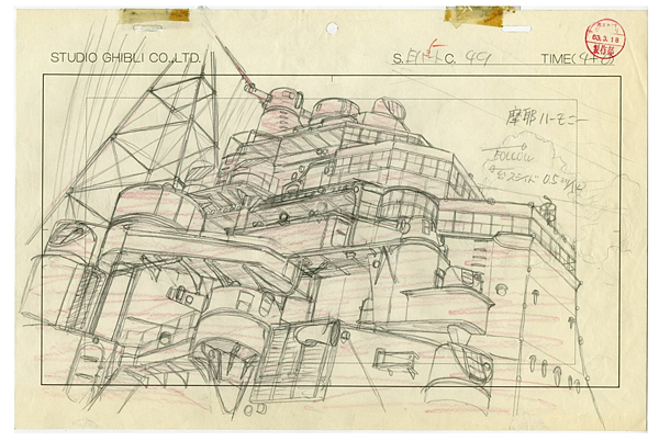 值得一提的是,《螢火蟲之墓》展區有一件由動畫導演庵野秀明(代表作為《新世紀福音戰士》)繪製、於本次展覽首次公開的舊日本海軍重巡洋艦「摩耶」草稿原畫。
