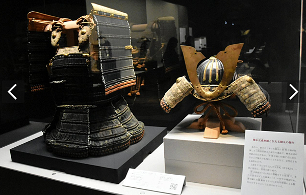 「赤糸威大鎧(竹虎雀飾)」與「赤糸威鎧(菊一文字鎧兜)」。(圖片來源:朝日新聞)