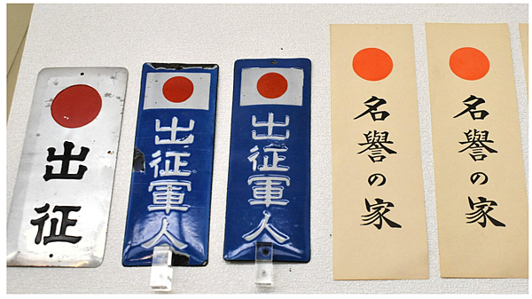 家族有家人出征時放置的「出征(軍人)」牌子(左),以及有戰死者時放置的「名譽之家」牌子(右)。(圖片來源:朝日新聞)