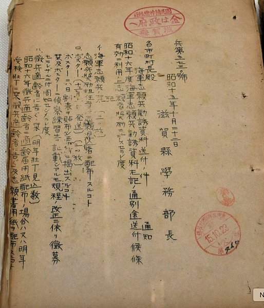 當日本政府在 1945 年 8 月宣布投降後,大本營隨即命令各地兵事股將戰爭時期記錄徵兵及動員等內容的公文書予以焚毀。話雖如此,滋賀縣長濱市大依町的淺井歷史民俗資料館,最近正展示一批理應不存在這世上的「兵事關係文書」。