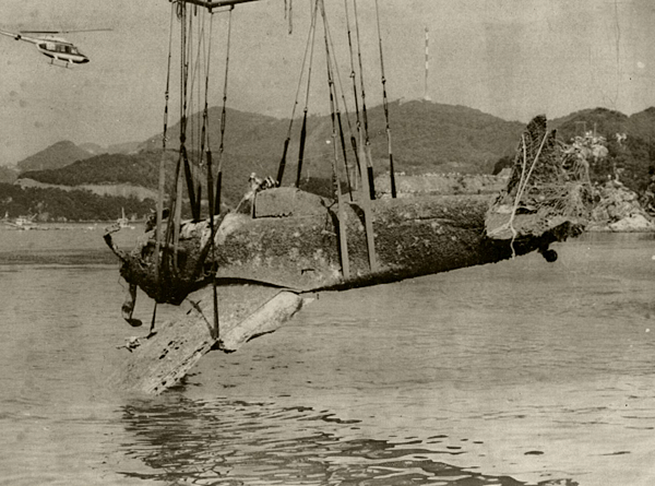 1978 年,當地潛水員發現這架紫電改的殘骸,翌年由縣廳將其打撈上岸,並將其當作祈願永久和平的象徵,展示於愛南町的馬瀬山山頂。